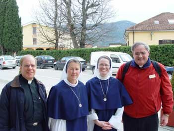Und so begab ich mich in ein Flugzeug mit 30 unbekannten Menschen zu einer zweiwöchigen Reise nach Medjugorje. Das war ein reines Geschenk der Gospa, damit ich um meine Berufung bete. Ich sagte ihr: Führe du mich! Ich wusste buchstäblich nicht, was ich tun sollte. Ich wusste, dass Gott mich ruft, aber wie sollte ich das befolgen? Eines Tages begegnete ich zufällig Pater Slavko Barbaric. Freunde rieten mir, mit ihm zu sprechen. Ich sagte zu ihm: „ Ich glaube, dass Gott mich wirklich in ein Ordensleben beruft, aber ich bin schon 50 Jahre alt.“ Er sagte: „Hör zu. Wenn Du drei Männer kennen würdest und du müsstest dich entscheiden, einen davon zu heiraten, was würdest du tun?“ Ich sagte zu ihm: „Ich würde mit jedem eine Zeit verbringen, um zu sehen, ob wir uns vertragen.“ Er antwortete mir: „Mit dem Ordensleben ist es ähnlich. Es gibt drei verschiedene Arten von Orden: völlig apostolische, sie arbeiten in der Welt; völlig kontemplative, sie beten immerzu, und es gibt eine Kombination von beiden. Was meinst du, wofür würdest du dich entscheiden?“ Ich antwortete: „Für die letztere. Ich liebe Got und ich liebe die Menschen.“ Er sagte zu mir: „Dann geh nach Hause und besuche kontemplative und auch apostolische Orden. Bei deinem Besuch wirst du merken, ob ihr etwas Gemeinsames in der geistigen Haltung habt, und wo du ein Charisma hast. Du wirst es merken. Wenn du an den richtigen Ort kommst, wird ein großer Friede über dich kommen.“ Ich bedankte mich bei ihm und ging weg. Ich meinte, er habe mir interessante Sachen gesagt. Die ganze Zeit, wohin auch immer ich mich in Medjugorje begab, saß stets eine geistliche Schwester neben mir. Es gab so viele Menschen in Medjugorje, es war ja der Monat September, aber dennoch saß diese Schwester an meiner Seite! Man sang gerade jenes englische Lied: „Hier bin ich, Herr“… Ich betete und fühlte mich wohl….