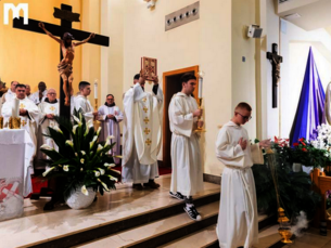 „Als sie ihn lebend sahen, veränderte sich ihr Leben grundlegend. Und als sie den lebendigen Jesus sahen, konnten sie durch die Gabe des Heiligen Geistes auf alles zurückblicken, was sie mit ihm erlebt hatten, und dann begannen sie zu verstehen. Sie begriffen insbesondere, dass das Letzte Abendmahl und das Kreuz ein und dasselbe Ereignis sind. Beim Letzten Abendmahl sprach Jesus über dem Brot: ‚Das ist mein Leib, der für euch hingegeben wird.‘ Und wann gab er seinen Leib und sein Leben für uns? Am Kreuz! Und über dem Kelch sprach er: ‚Dies ist mein Blut, das für euch vergossen wird zur Vergebung der Sünden.‘ Und als er das tat, ging er zum Kreuz“, sagte Erzbischof Cavalli und erklärte dann, wie Jesus uns vom Tabernakel aus ansieht und wir ihn ansehen. - Er dachte auch an das Jugendfestival in Medjugorje.