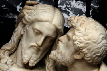 Judas verriet Jesus für 30 Silberstücke an die Hohepriester, symbolisiert durch den „Judaskuss“.