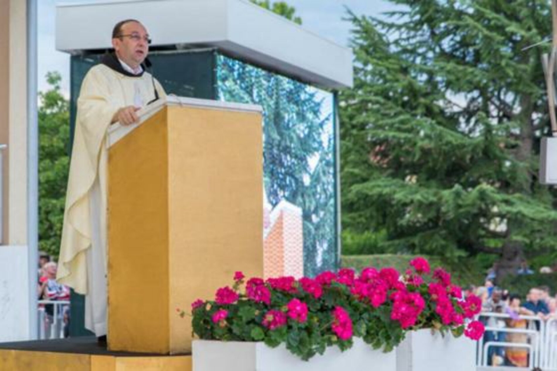 Schon am Vorabend des Jahrestages konzelebrierten hunderte von Priestern die Abendmesse, welche Pater Marinko leitete. In seiner Predigt ging er vor allem auf die Botschaften des Friedens der Muttergottes ein. Er sprach auch viel vom Aufruf an die Pfarrmitglieder, ein heiligmäßiges Leben zu führen und ein Vorbild für alle Pilger zu sein, wie sie dies ja bekanntlich wirklich, besonders in den Anfängen der Erscheinungen, in so beeindruckender Weise waren. Pater Marinko sprach aber auch von der Gefahr der Versuchungen des Bösen, die wir erkennen und uns mit dem Gebet vor ihr schützen sollen.